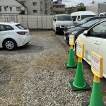 レンタカー屋さんの駐車場は車両の出入りが多く、安全面にも特に注意が必要な現場です。